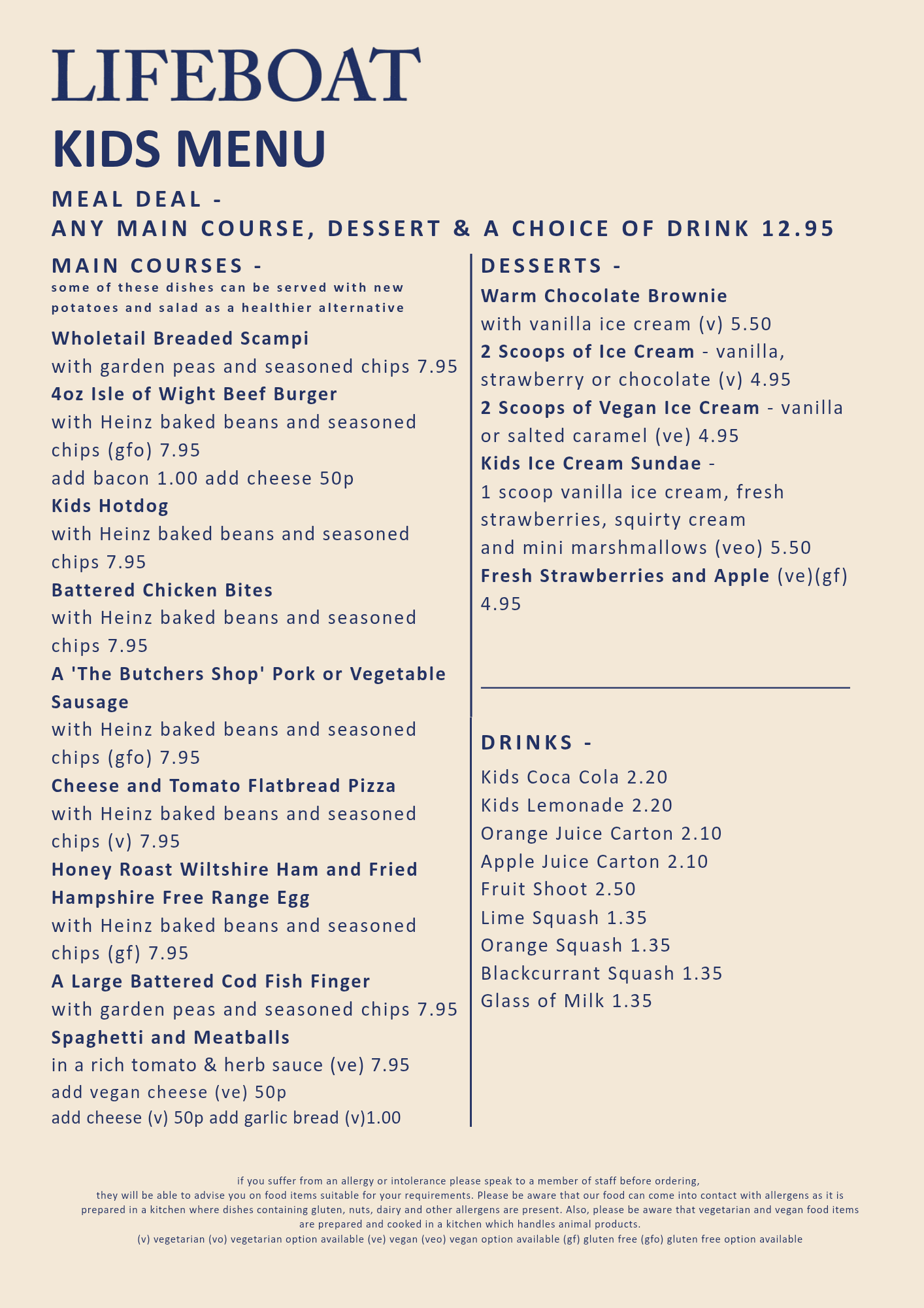 KIDS Children are always welcome and we have a pretty extensive menu for them, as well as easy changing facilities in our loos
