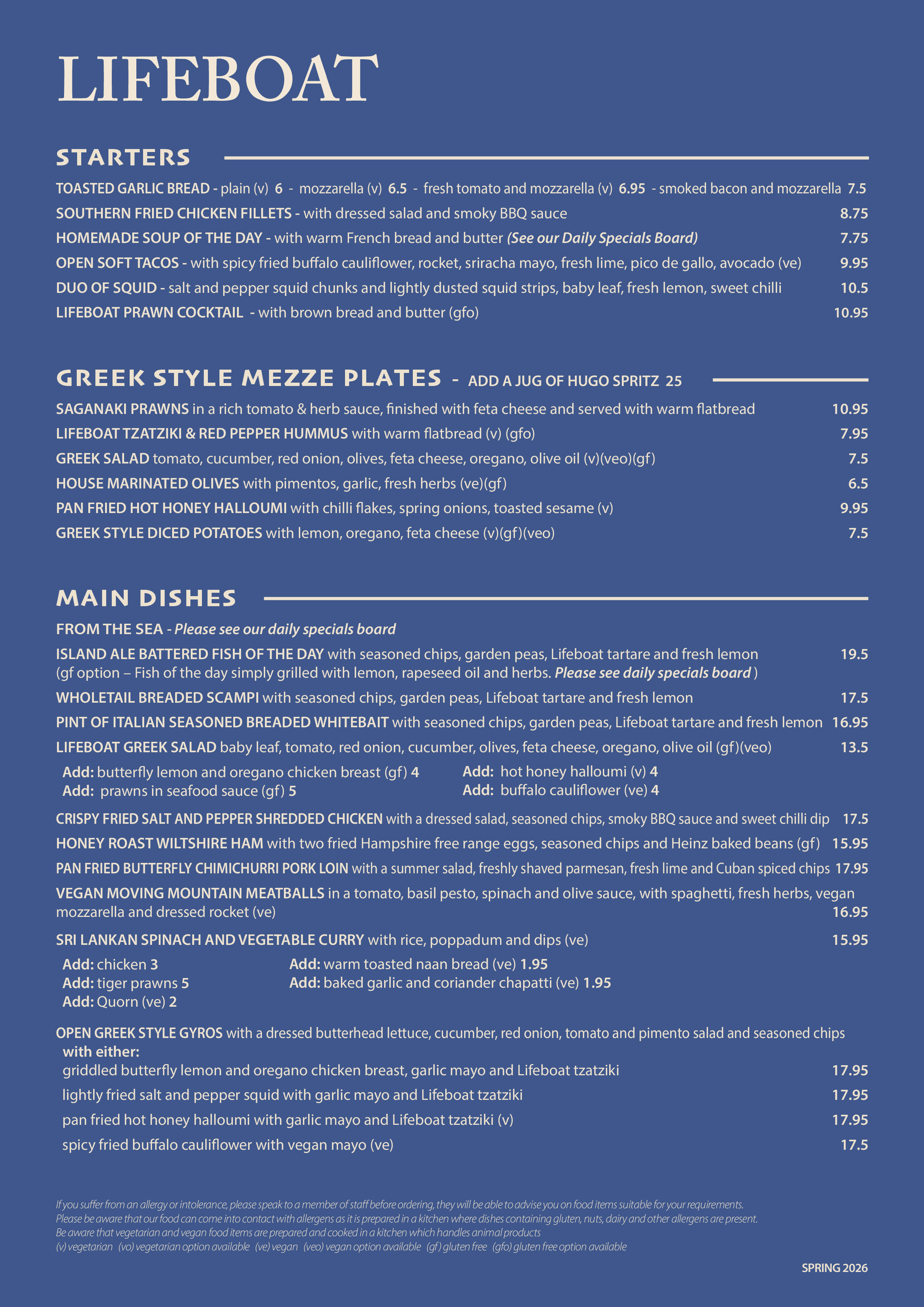 MAIN MENU We are able to accommodate at least 120 inside The Lifeboat and more than 100 on our fantastic deck overlooking the Medina River BOOK A TABLE